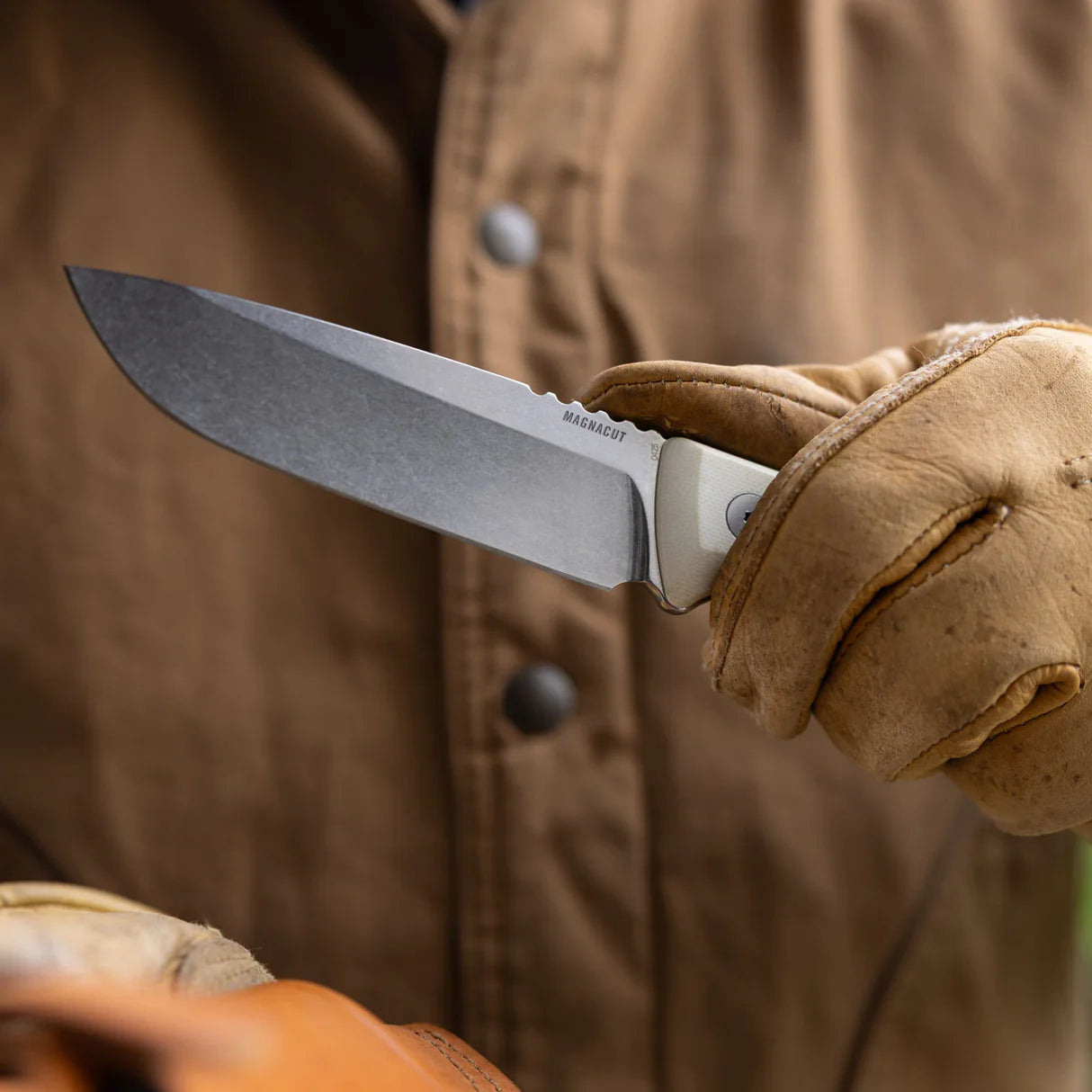 Precision hollow saber grind, drop point, full-tang MagnaCut® blade for cutting power and slicing precision.